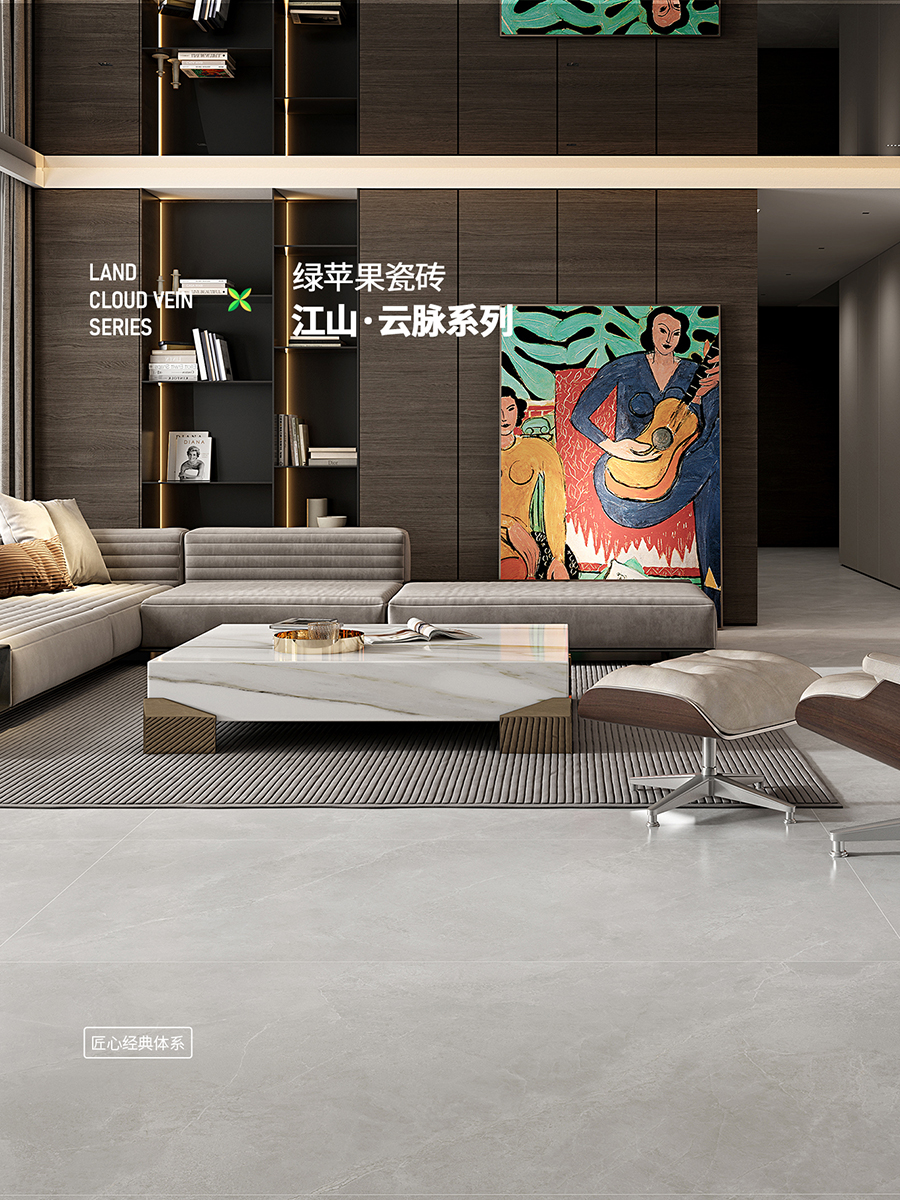 新生代品牌瓷磚綠蘋果瓷磚GREEN APPLE 始于2010年,糅合潮流元素與多變格調,優選品質好物,用顛覆創新的思維去組合夢想空間,打造時尚、激情、富有情感互動的理想家,其中張揚著年輕、奮斗和快樂的DNA。產品集合國際潮流色彩,以“給每個年輕人一個夢想的家”為品牌使命,傳遞正青春的簡單理念和細膩入微的質感精神。